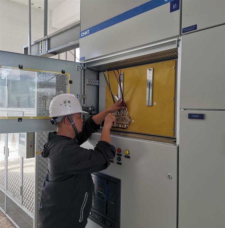 賀毅在檢查設備電路情況