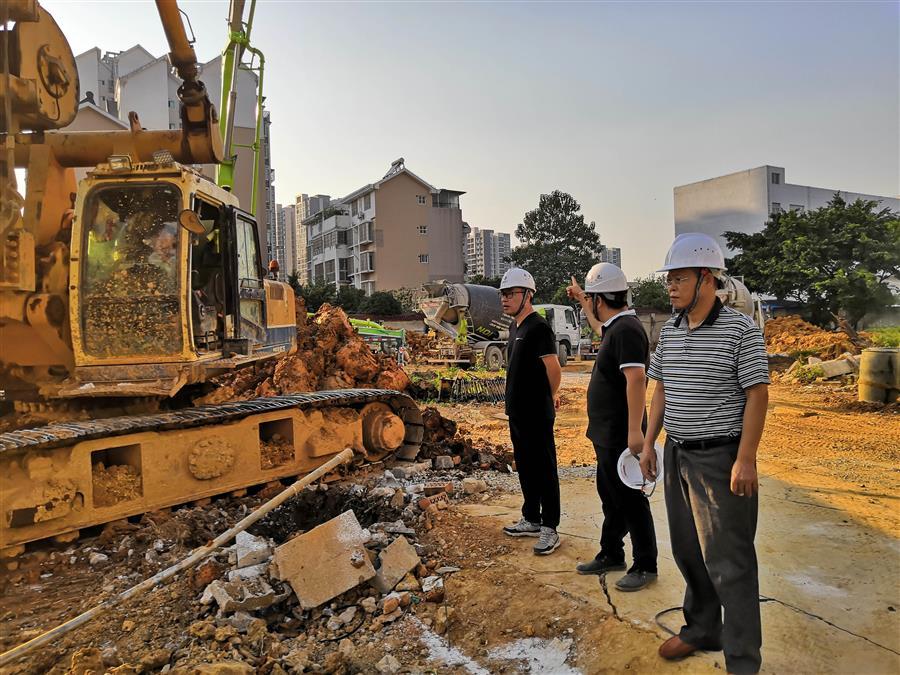 10月5日上午,桂東分公司經(jīng)理謝勇、黨支部書記黃桂軍來到柳州市防汛抗旱物資儲備倉庫工程項目現(xiàn)場慰問看望節(jié)假日仍堅守崗位的一線員工。該項目施工現(xiàn)場地質(zhì)條件復雜,容易塌孔且地下層部分為巖石層結構,施工難度大。為確保在甲方要求的工期內(nèi)完成施工,工人們節(jié)假日仍加班加點搶工期。他們腳踏黃土,頭頂著炎炎烈日,揮灑著蒸騰的汗水,以實際行動為集團公司早日躋身世界500強貢獻力量!